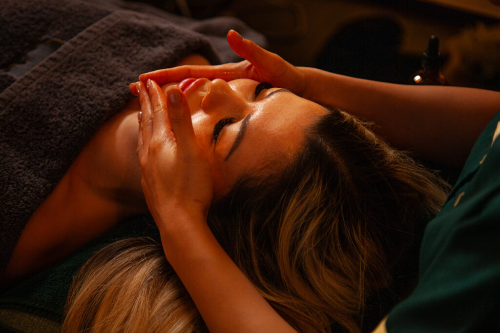 NUSA liftingujący masaż twarzy obejmuje masaż górnej części pleców inspirowany balijską tradycją, relaksujący masaż głowy i liftingujący masaż twarzy z elementami Kobido.